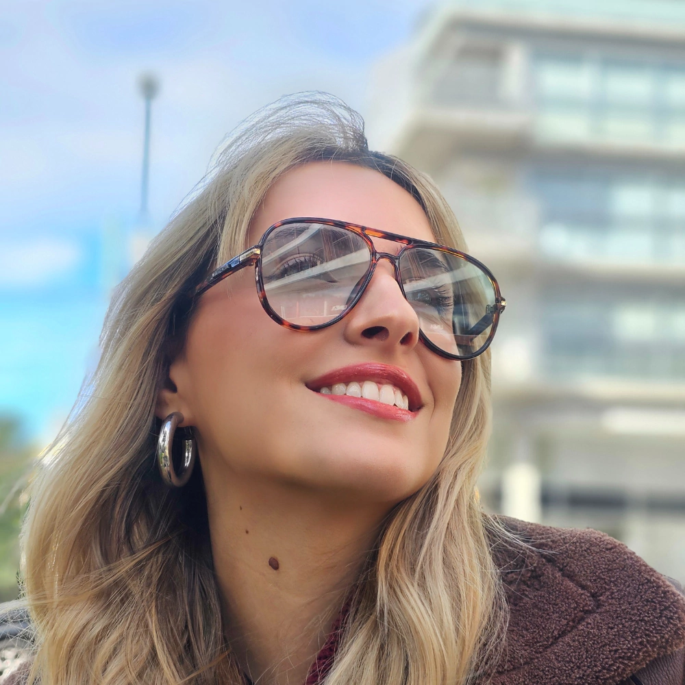 El modelo Berlín reinterpreta el clásico aviador con un diseño liviano y un look que no pasa desapercibido. Su formato amplio y envolvente se combina con un tono celeste cálido en los lentes, ideal para sumar personalidad a tu outfit sin renunciar a la comodidad.