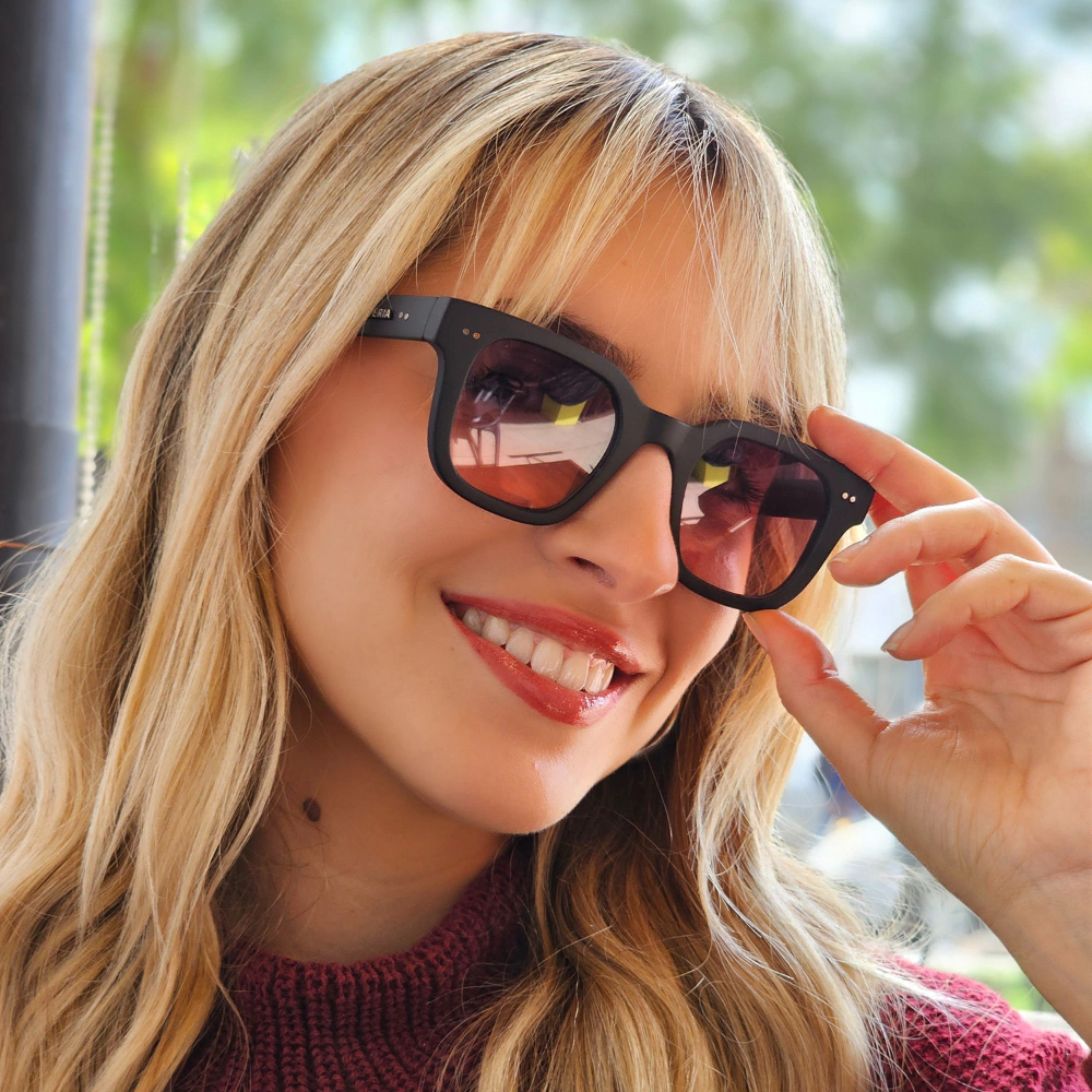 Inspirado en los clásicos, el modelo NY Vintage trae una silueta cuadrada con aires vintage y una terminación moderna. Su frente negro profundo y lentes degrade en tonos violeta y marrón aportan personalidad sin perder elegancia.